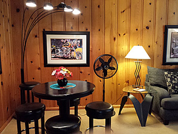 Decorated in Harley-Davidson theme, a tribute to the fact